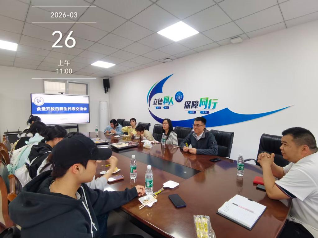 3月26日,后勤基建处举办食堂开放日师生代表交流会,邀请学生代表走进食堂后厨,与管理人员面对面沟通。