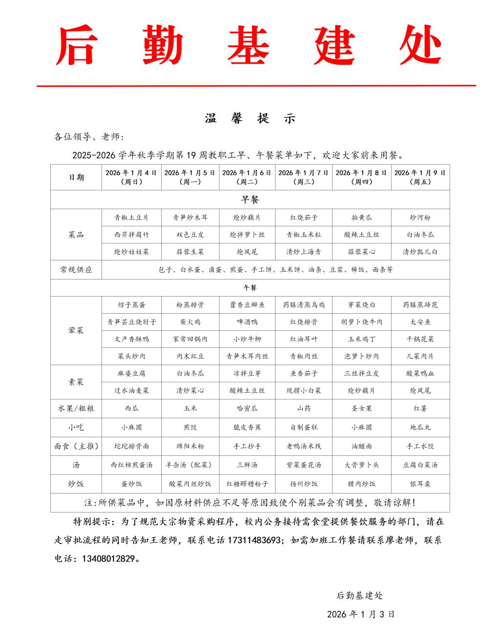 下一篇:教职工食堂2025年秋季学期第十八周菜单