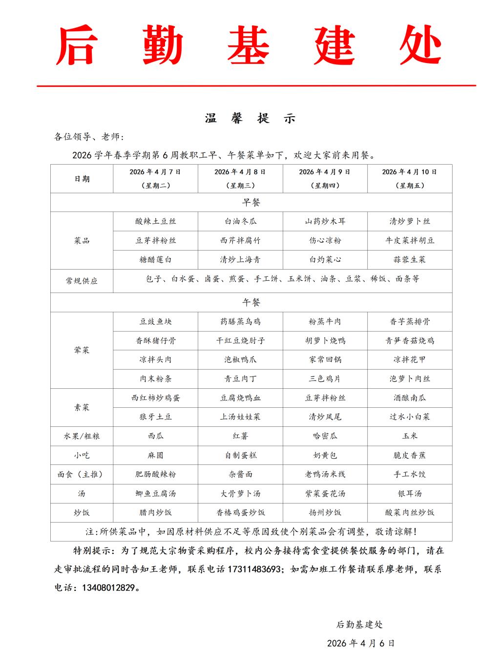 下一篇:教职工食堂2026年春季学期第5周菜单