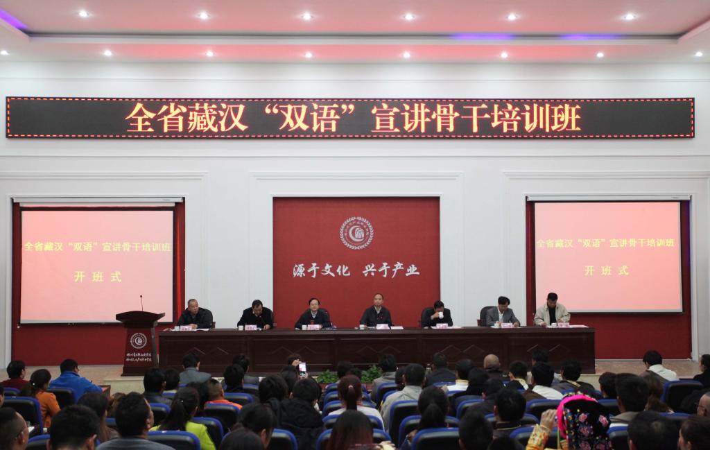 11月23日下午,第一期全省藏汉双语宣传骨干培训班在我校第二教学楼105多功能会议厅举行开班仪式。省委宣传部副部长李酌、省统战部副部长张富国,校党委副书记、院长罗晓东及省高院、司法厅相关负责人出席开班仪式。