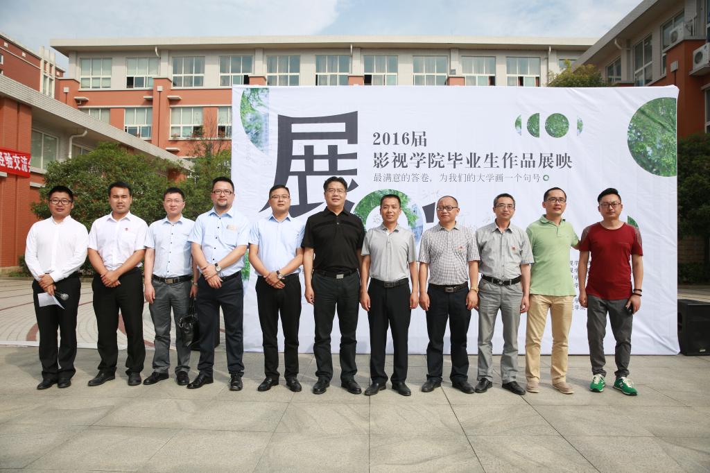 6月8日上午,影视学院2016届毕业生毕业作品展映活动在创慧楼广场拉开帷幕。校领导肖必恒、曹启富,示范办主任向天华、教务处副处长李成林,行业专家代表以及我院全体教师,13、14、15级各年级学生代表参加了开幕式及观影活动。