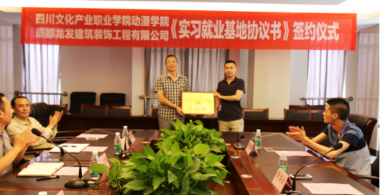 6月13日上午,动漫学院与成都龙发建筑装饰工程有限公司在明慧楼217会议室签订了实习就业基地协议书。学校肖必恒副院长、及教务处、招生就业处主要负责人出席签约仪式。签约仪式由动漫学院院长助理余社桥主持。