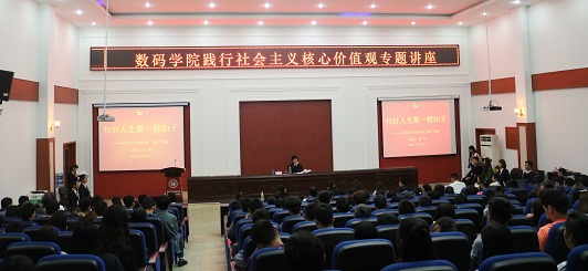 为深入学习贯彻习总书记在北京大学师生座谈会上的讲话精神,推动青年大学生积极践行社会主义核心价值观,2016年10月28日下午,校党委副书记、纪委书记党华在二教105为数码学院学生作了“践行社会主义核心价值观”专题讲座。