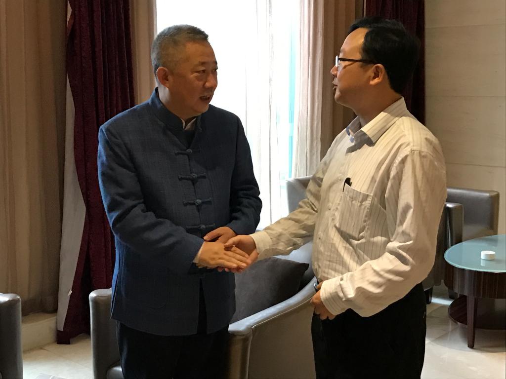 论坛期间,罗晓东与海峡两岸文化创意产业高校研究联盟理事长、中国传媒大学经管学部学部长兼文化发展研究院院长范周教授进行了会谈。在会谈中,范周对我校鼎力支持联盟工作表示感谢,并对我校取得的办学成绩表示祝贺。罗晓东向范周介绍了我校近两年在人才培养、科学研究等方面取得的进步,并诚挚邀请范周拨冗出席明年的文化产业发展研究中心学术论坛。范周认为中国传媒大学文化发展研究院与我校在文化创意产业人才培养上都符合宏观的文化产业人才需求链条,与我校文化产业发展研究中心在引领文化创意产业发展脉络上一致,双方存在众多的合作机会和合作需求,希望双方能够保持联系,加强交流。