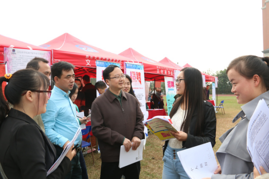 11月3日下午,文化商学院2017届毕业生双选会在校足球场举行,文化商学院2017届894名毕业生和兄弟学院应届毕业生共计1500余人参加了本次双选会。我校院长罗晓东在招生就业处副处长汤辉及相关人员陪同下莅临双选会现场指导工作。
