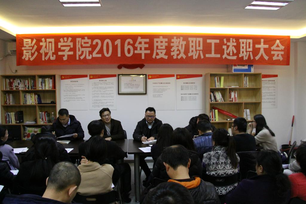 12月20日,影视学院在颖艺楼举行“2016年度教职工述职会”。学校副院长曹启富出席会议。影视学院副院长秦勉、党总支副书记黄自立及全院教职工参加会议。会议由影视学院院长范欣主持。