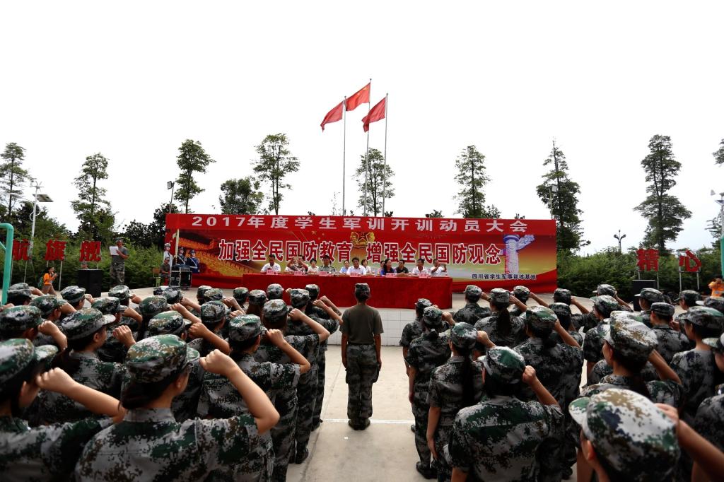 下午3点30分,军训动员大会在《中国人民解放军军歌》中拉开序幕,“服从命令,听从指挥,不怕流血流汗,决不当逃兵……”新同学们用铿锵有力的誓词,喊出了铮铮铁骨的豪迈。副院长曹启富在动员会上讲到:军训是大学生涯中一堂非常重要的课程,是重视军事教育和爱国主义教育,积极践行和培育社会主义核心价值观的具体体现。他希望同学们珍惜机会,全心投入,以饱满的热情、昂扬的斗志投入到军训中去,不畏苦累、不畏风雨,守纪律、强作风、增体能,以良好的状态迎接三年大学生活。四川省学生军事训练基地龙泉驿区人民武装部分基地政委刁显明要求全体参训学员要吃苦耐劳、勤于训练、严守纪律、争当模范!