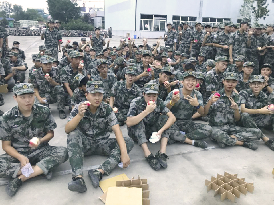 在军训现场,雨后的地面倒影出新生们风雨无惧的认真与笃定。在教官的口令声中,踢腿、摆臂、立正、稍息,整齐划一、令行禁止。同学们良好的精神面貌朝气蓬勃,大家在这场磨练中逐渐成长、光速蜕变。