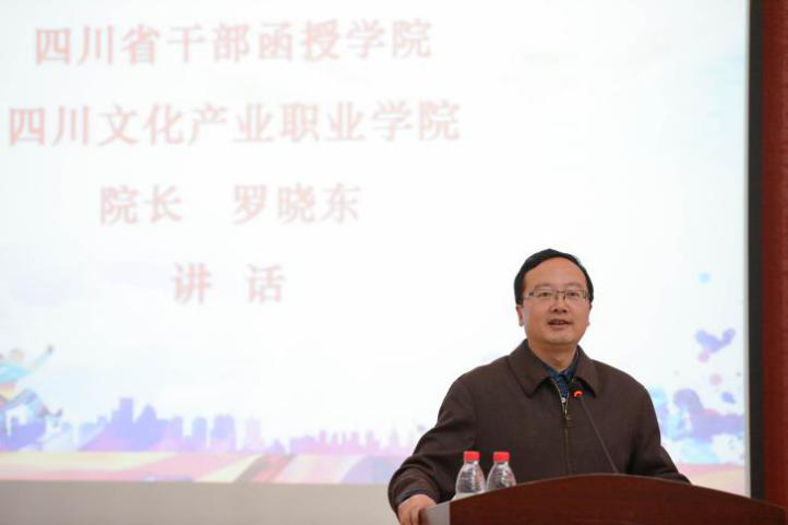 10月23日下午,“四川省文化产业人才培养基地暨‘新天杰订单班’启动仪式”在我校举行。校领导罗晓东、李太斌,省文化产业商会会长、省民营文化企业协会创会会长张建华,省文化产业商会执行会长、省民营文化企业协会会长夏洪,四川新天杰文化传媒股份有限公司董事长林新生、总裁潘杰及企业相关领导出席启动仪式。中央人民广播电台四川记者站站长陈俊、人民日报社四川分社记者宋豪新莅临指导。启动仪式由文化商学院院长宋晓主持。