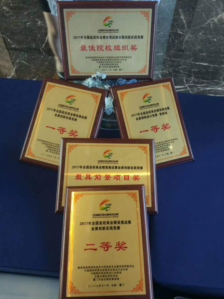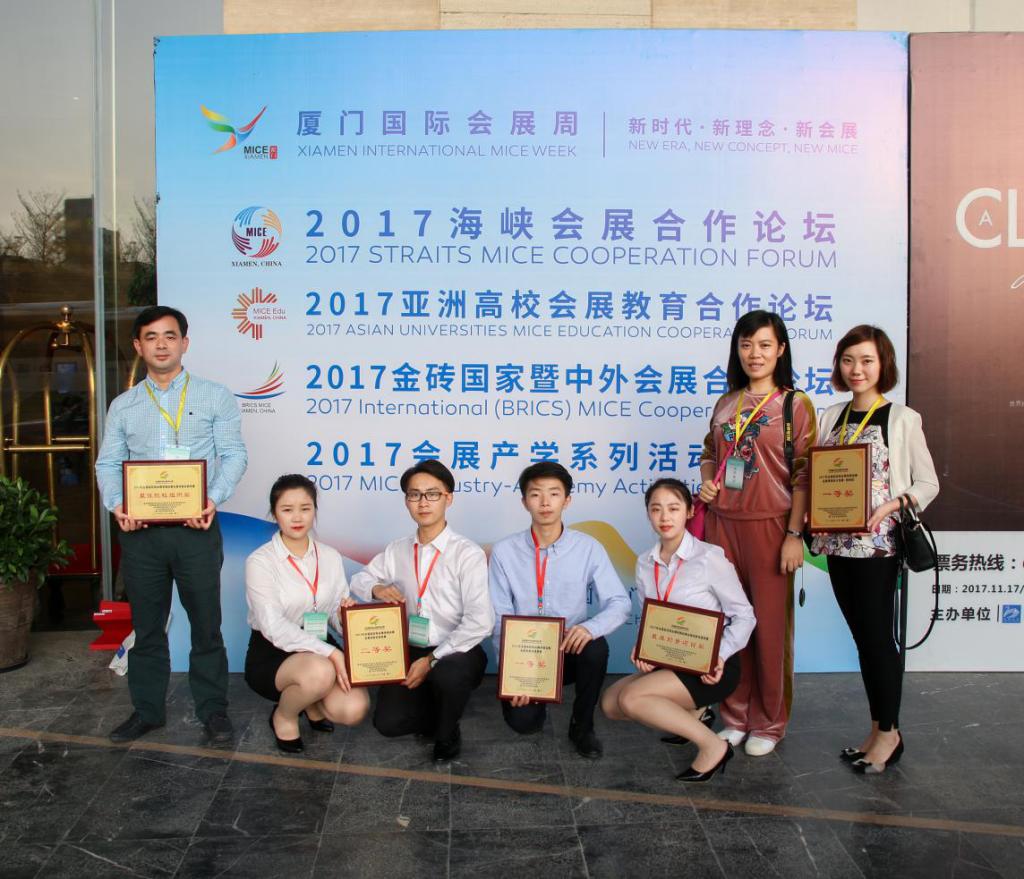 11月7日至10日,由教育部高等学校经济与贸易类专业教学指导委员会中国贸促会商业行业分会、中国国际商会商业行业商会、中国会展经济研究会、厦门市会议展览事务局共同主办的2017年全国高校商业精英挑战赛会展创新实践竞赛在福建省厦门市举行。经过激烈角逐,由我校文化商学院2015级和2016级会展策划管理专业师生组成的2支参赛队获得了一等奖2项、二等奖1项、单项奖1项和最佳院校组织奖的好成绩。