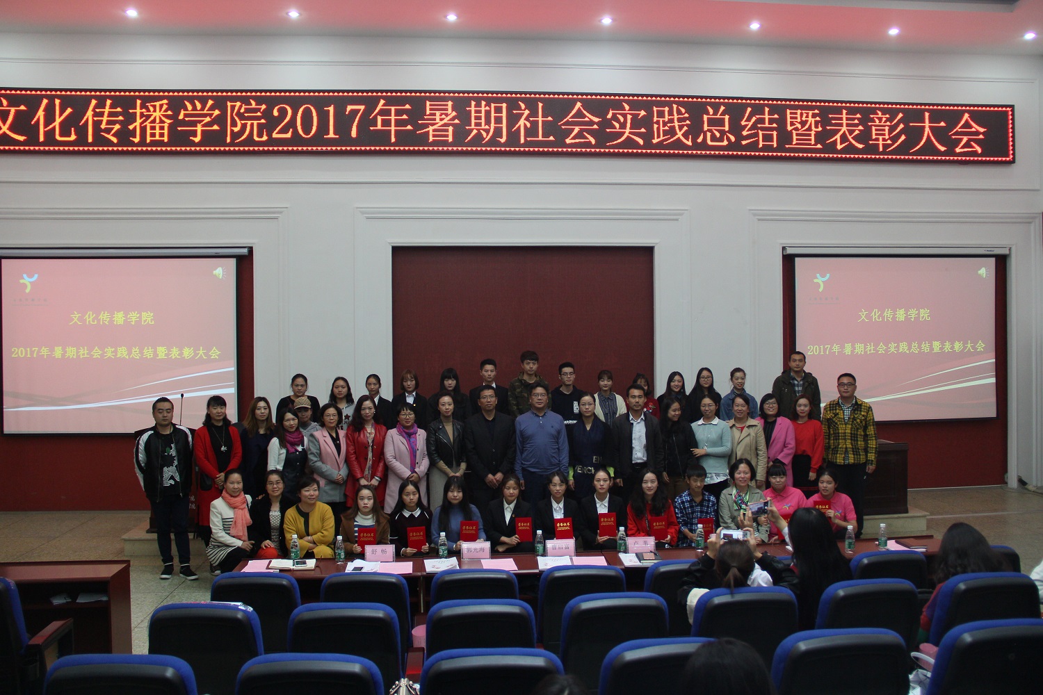 11月10日下午,我院在二教105举行了2017年大学生暑期社会实践总结暨表彰大会。学校副院长曹启富,校学生工作部副部长卢苇,校团委书记黄自立,文传学院党总支书记、院长郭光海,党总支副书记舒畅及文传学院全体教师出席了大会。大会由我院第五届分团委学生书记唐秋函主持。