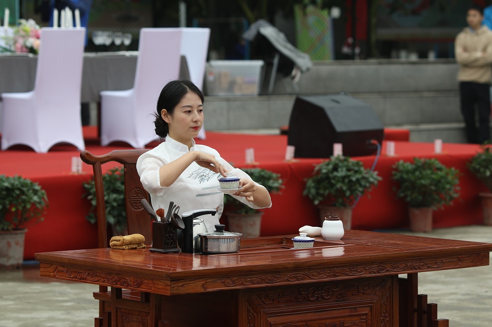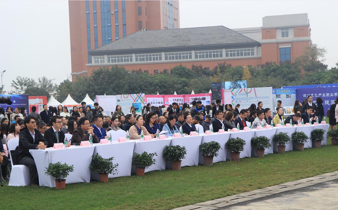 在开幕式的第二阶段,18届毕业生们进行了专业技能展示。盖碗茶茶艺展示在轻柔静美的氛围中讲述了天地人合一的古代哲学;中西餐餐桌摆放礼仪表演优雅地诠释了淑女与绅士的定义;五花海和乐山大佛的导游讲解带领大家登此山涉此水;《梦想》和《20年的守候》两部原创纪录片充分展示了文产人的专业素养和当代青年的社会担当;《祖国啊,我亲爱的祖国》诗歌朗诵表达了文产学子对祖国的热爱,吐露出对未来生活的美好向往;服装立体裁剪表演者用游走的指尖传递了褶皱和线条的美感;纸艺文创产品《国之二宝》引发了一场关于中西融合的遐想;2018首届川剧文化衍生品暨国风主题电竞展览会策划,则立体呈现了传统与现代的巧妙碰撞。