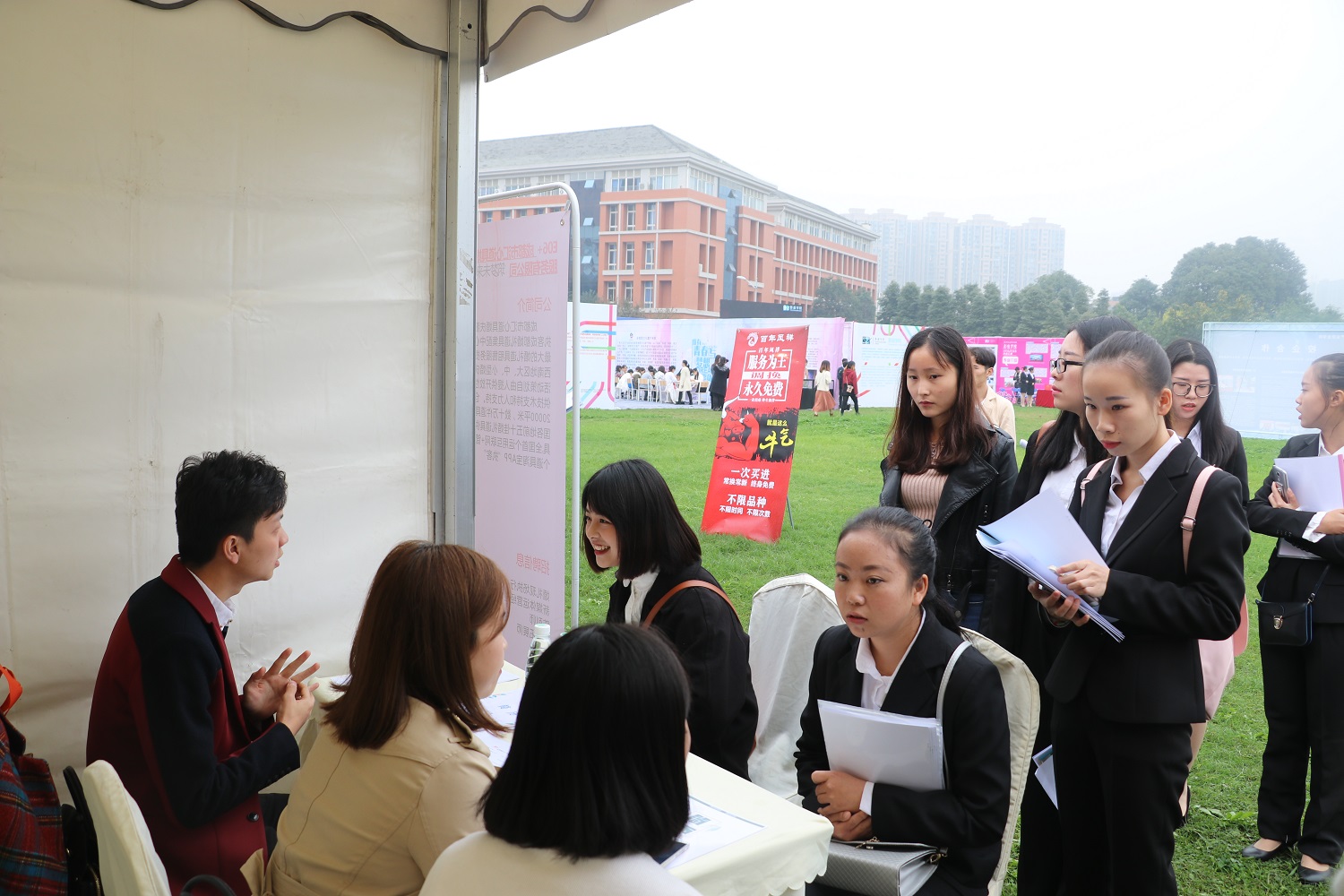 此次展选会共吸引来自省内外的125家企业来校选聘,企业类型众多,涉及文创、传媒、酒店、地产、会展等众多领域。