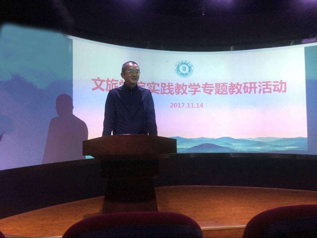 11月14日下午,文化旅游学院在明道楼八楼举办了实践教学专题教研活动。校领导李太斌、教务处长陈敬贵参加专题教研活动并给予指导。
