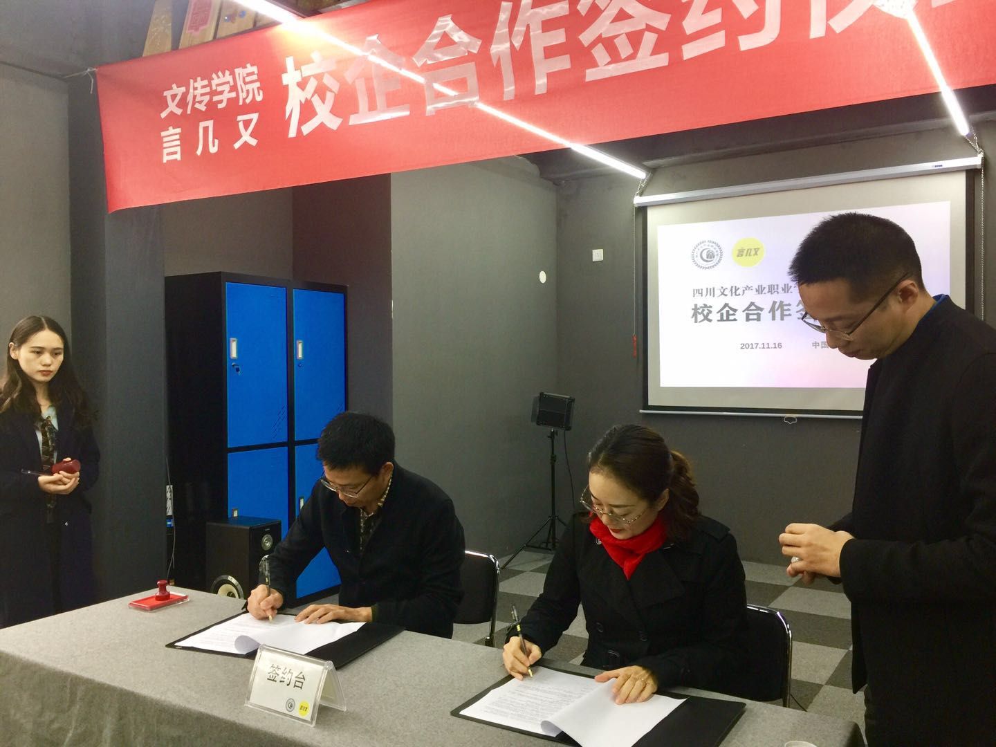 11月17日,言几又文化传播有限公司与我校文传学院举行了校企合作签约仪式。我校罗晓东院长、言几又文化传播有限公司联合创始人副总裁刘嘉出席了签约仪式,签约仪式由文传学院院长郭光海主持。