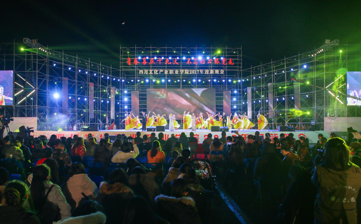 11月23日晚,由我校学工部主办的“青春喜庆十九大 不忘初心跟党走”——2017年迎新晚会在文星足球场举行。晚会紧扣时代主旋律,在《歌唱祖国》、《今天我们这样爱国》、《我的中国心》、《离•川》、《不忘初心》等12个歌舞、诗朗诵、舞台剧等的表演中,反映了文产师生不忘初心、锐意进取的执着精神,表达了文产师生立足新时代、秉持新气象、力求新作为的卓越追求,引起了在场六千余名师生的热烈反响。