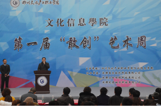 成都完美动力科技有限公司作为校企合作方代表进行了发言,为支持“敢创”艺术周还特意设置了完美动力“敢创”奖,用于表彰优秀学生作品,鼓励学生敢想、敢创。