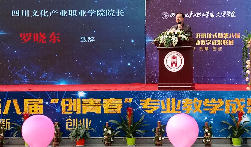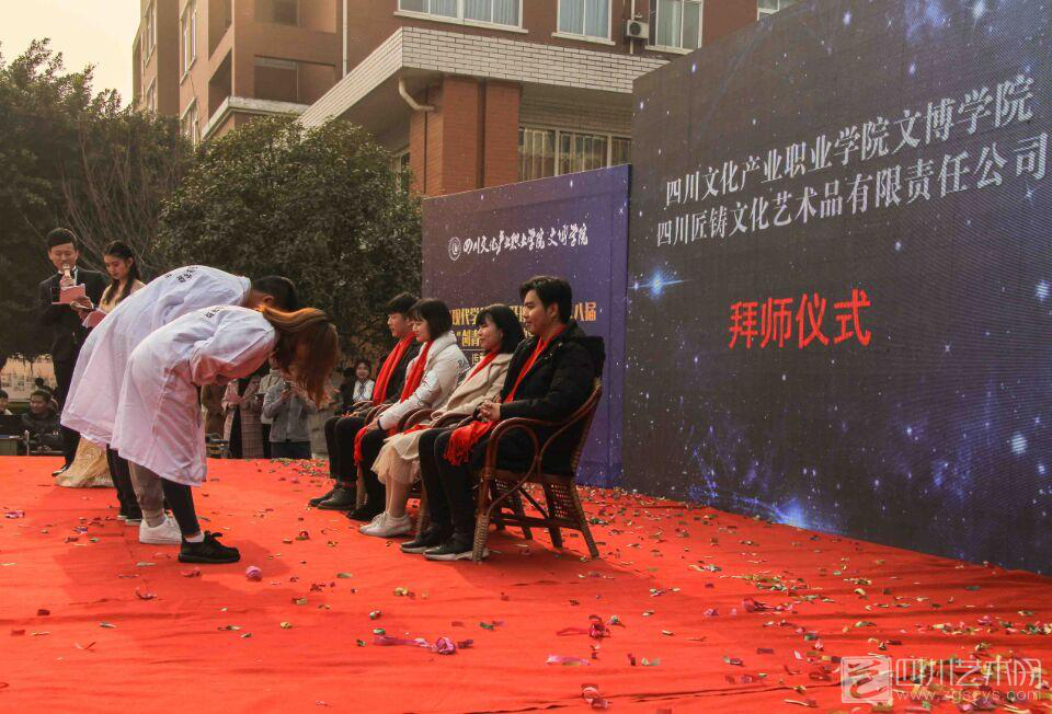12月25日,我校文博学院首届“现代学徒制”试点班开班仪式暨文博视界第八届“创青春”专业教学成果联展开幕式在创慧楼举行。校领导罗晓东、李太斌,文博学院院长岳湛、学校各职能部门负责人等出席开幕式。中国工艺美术大师倪成玉、成都市创意产业联合会会长张桂铭、四川匠铸文化艺术品有限公司总经理李宇、副总经理李欣,都江堰职业中学校长张武、四川省婚庆行业协会等嘉宾出席仪式。