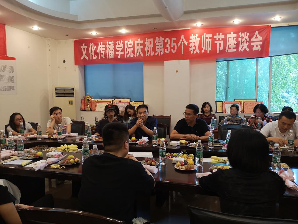 秋风送爽,桃李芬芳。9月10日下午,校党委副书记王泗德与文化传播学院全体教职工在文传学院会议室欢聚一堂,言笑言欢,共同庆祝第三十五个教师节。座谈会由文传学院党总支书记、院长郭光海主持。