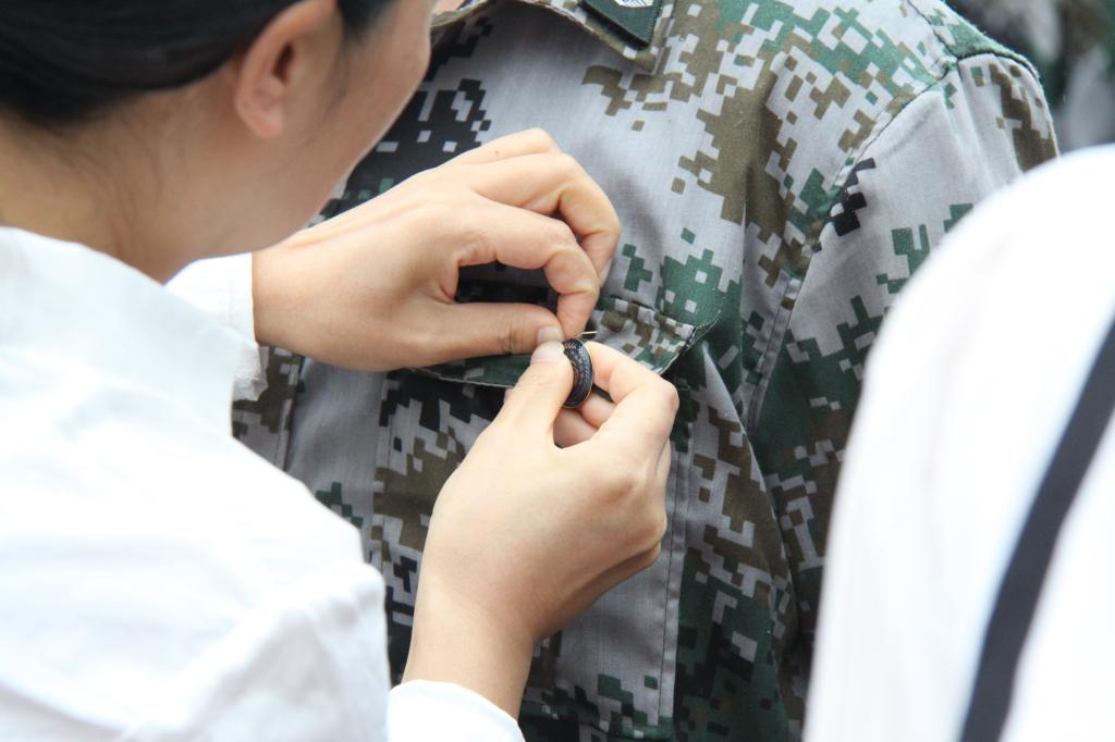 在庄严的国歌下,精神抖擞的国旗护卫队高举着国旗、踏着整齐而坚定的步伐进入了会场。老师们为新生代表佩戴上校徽的那一刻,预示着他们正式成为“文产人”。这一全新的身份让他们有了新的开始,将会在未来的三年里,在这美丽的校园中,尽情绽放自己的青春光芒。