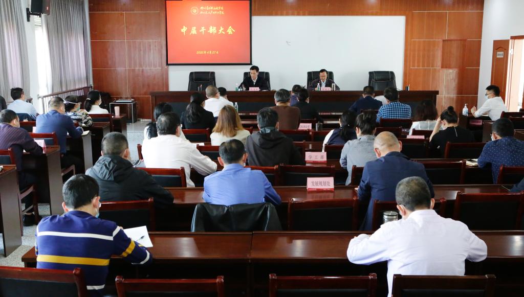 4月28日下午,学校在明慧楼503会议室召开中层干部大会,传达学习习近平总书记有关疫情防控和恢复社会经济发展的重要指示批示精神,认真贯彻落实党中央国务院、省委省政府、省委宣传部、省教育厅各项决策部署,总结前一阶段新冠肺炎疫情防控工作情况,安排部署学生返校开学后的重点工作。校党委书记代光举同志主持会议并作重要讲话。全体校领导、中层干部参加会议。