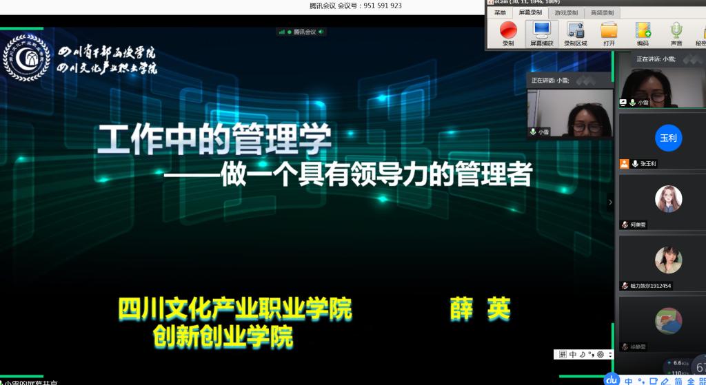 2020年6月3日,我校创新创业学院负责人薛英老师通过腾讯会议直播课堂,与南开大学商学院本科一年级108名学生,就工商管理学领域中管理学相关课程内容的实践应用,作了题为《做一个具有领导力的管理者》的远程分享。