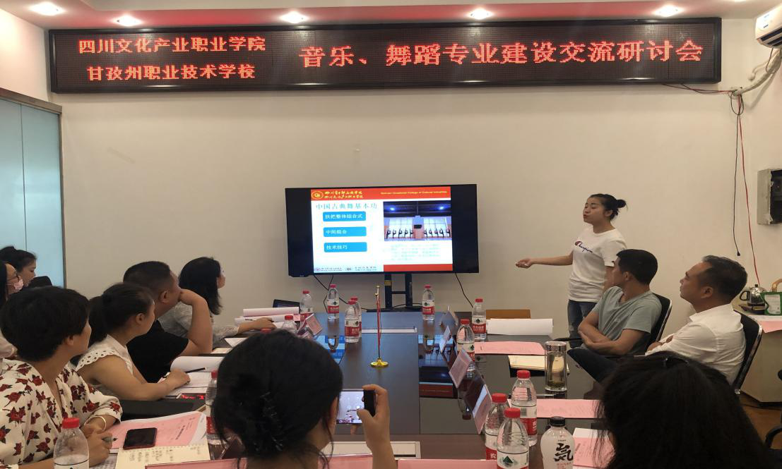 6月8日,甘孜州职业技术学校文艺部主任杨舟率该校音乐及舞蹈专业骨干教学团队到我校交流。学校副院长李太斌、校企合作办主任杨玲和文化信息学院总支书记何林、院长唐勇、副院长王勇及相关专业负责人参加交流会。