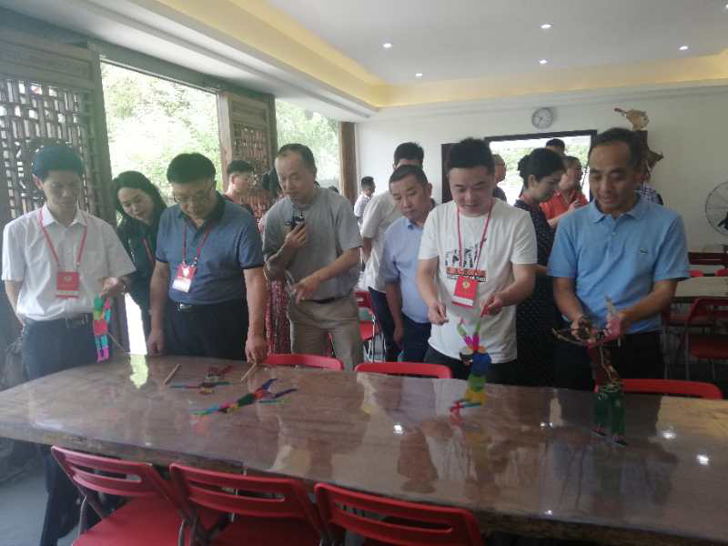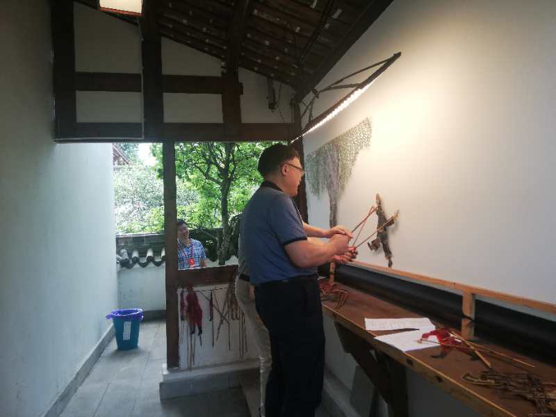 当天上午,都江堰市政协副主席杨永奎与周中国一行40余人视察了我校校企合作单位——成都皮影艺术博物馆。视察组一行重点参观了皮影展厅和皮影研学教室。皮影大师工作室负责人赵洪介绍了工作室在皮影研学、成都皮影戏历史文化传承及创新、与旅游融合等方面的情况。市领导们对工作室在非遗传承方面所作出的的努力进表示充分肯定,对皮影大师工作室如何打造研学路线、实现文旅融合发展,如何推动非遗+文创、推动学生就业,如何开展非遗进校园等工作作出指导。