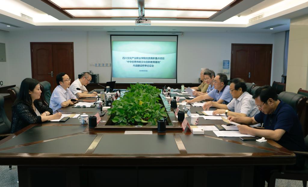 院长罗晓东向各位到场的专家致欢迎词。非遗学院负责人陈思琦介绍了“中华优秀传统文化创新教育基地”基本情况。专家们在研讨中一致认为,该项目意义重大,具有创新意义和多元价值,契合四川文化产业职业学院的办学理念。各位专家在“中华优秀传统文化创新教育”项目内涵建设的内容选取角度上提供了新思路,并就此项目基地的定位和命名、基地空间的文化脉络及逻辑关系、具体展陈内容等方面指出了指导性建议。