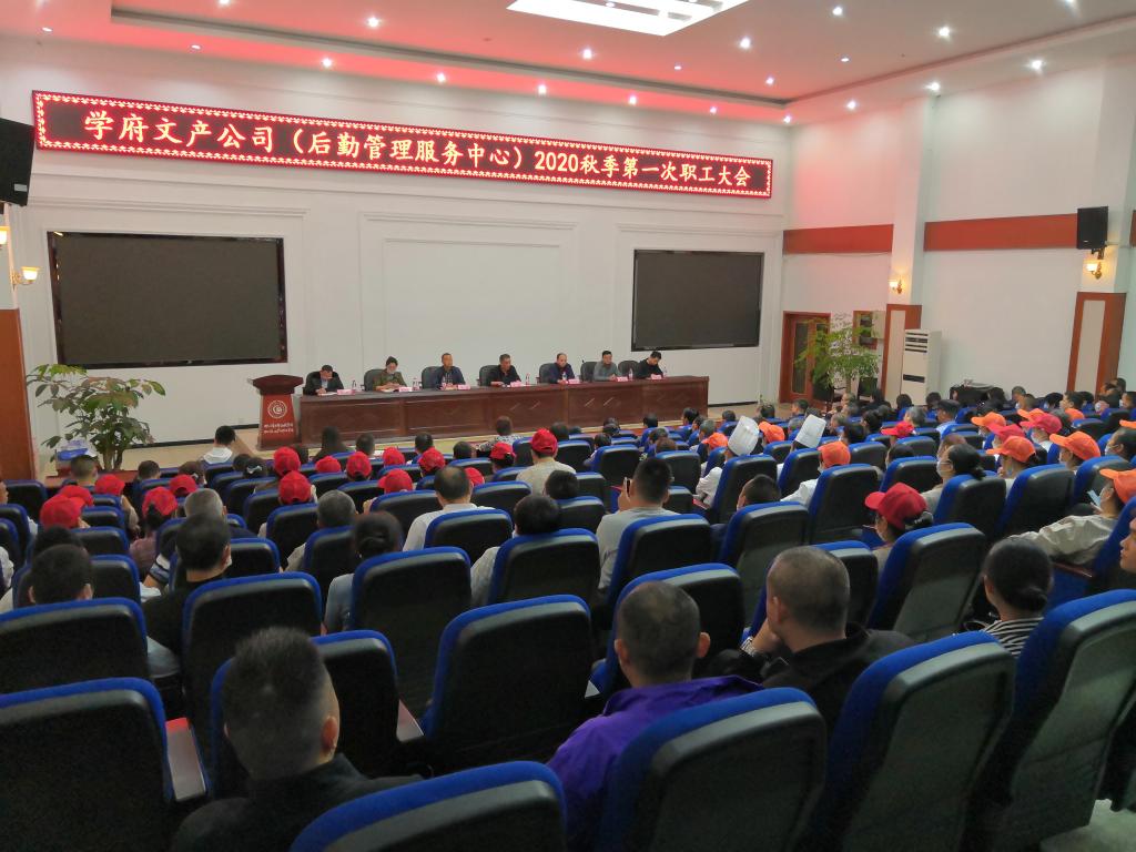 9月28日,四川学府文产商业管理有限公司(后勤管理服务中心),以下简称公司(中心),在二教105会议室召开2020年秋季第一次职工大会,100余位员工参加了会议,公司新一届领导班子成员在会上作了表态发言,何强副院长主持会议并作重要讲话。