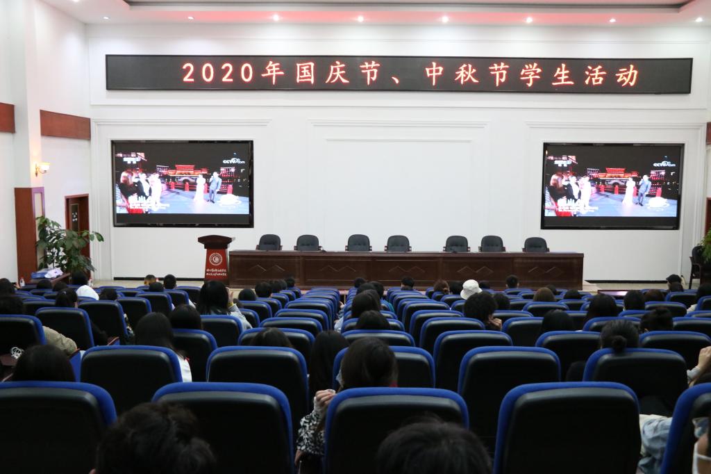 为庆祝伟大祖国成立71周年,传承中华优秀传统文化,激发广大青年学子的爱国主义情感和对优秀传统文化的认同感,10月1日晚,校团委在二教105组织观看2020央视中秋晚会,校团委书记兰楠、副书记邹渝,指导老师侯冠华、刘培来到现场,与200余名学生一起喜迎国庆中秋双节。