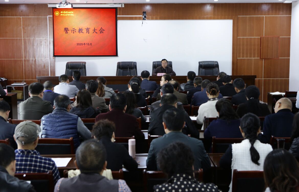 为深入贯彻落实全面从严治党的要求,充分发挥违纪违法典型案件的警示教育作用,10月21日下午,学校在明慧楼503召开2020年警示教育大会。全体校领导出席会议,全体中层干部69人参加会议。会议由校党委副书记、院长罗晓东同志主持。