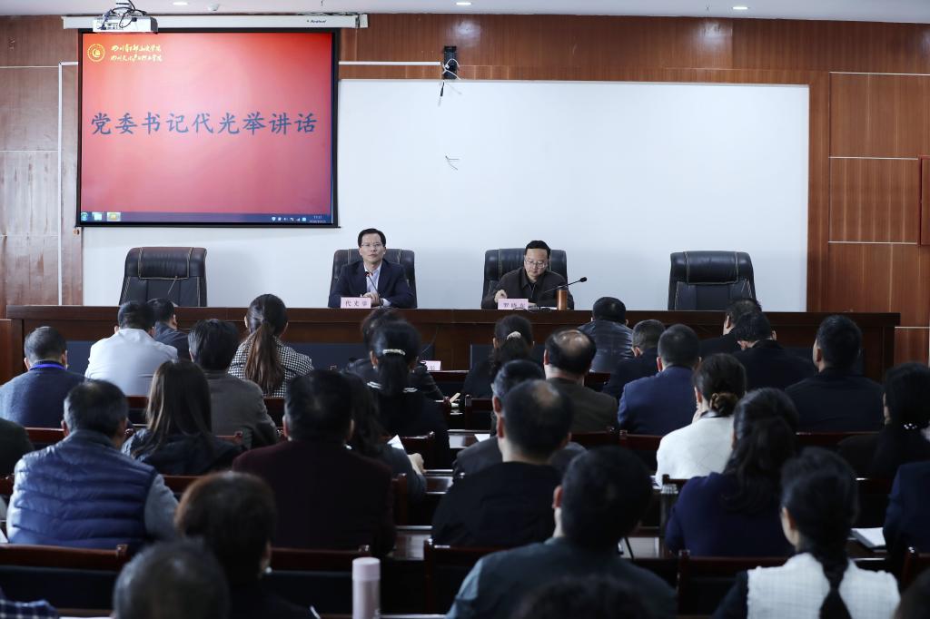 校党委书记代光举同志结合警示教育片中典型案例和身边事例,从一般性贪腐与高校贪腐,巨贪与小微腐败,时代潮流与个人坚守,道德修养与法律约束等四个方面问题和关系,告诫全体干部要不断提高党风廉政意识,慎用手中权力;要严守纪律规矩,常存敬畏之心;要坚守初心使命,工作生活谨言慎行;要提升个人修养,加强自我约束。他强调党风廉政建设永远在路上,大家要提升干事创业的精气神,要有清晰的任务目标和积极的工作状态,做一个有学问、品性优、懂规矩、知敬畏、讲团结、能干事的高校干部。