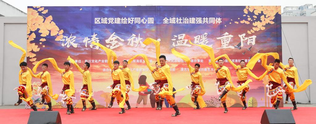 金秋十月爽,九九话重阳。为弘扬中华民族尊老、敬老的传统美德,丰富社区群众文化生活,10月23日,我校联合双流区文化馆、双流区怡心街道河池社区联合举办了“情浓金秋·温暖重阳 ”重阳节文艺演出进社区活动,为社区老年人带来了一场别开生面的文化盛宴。