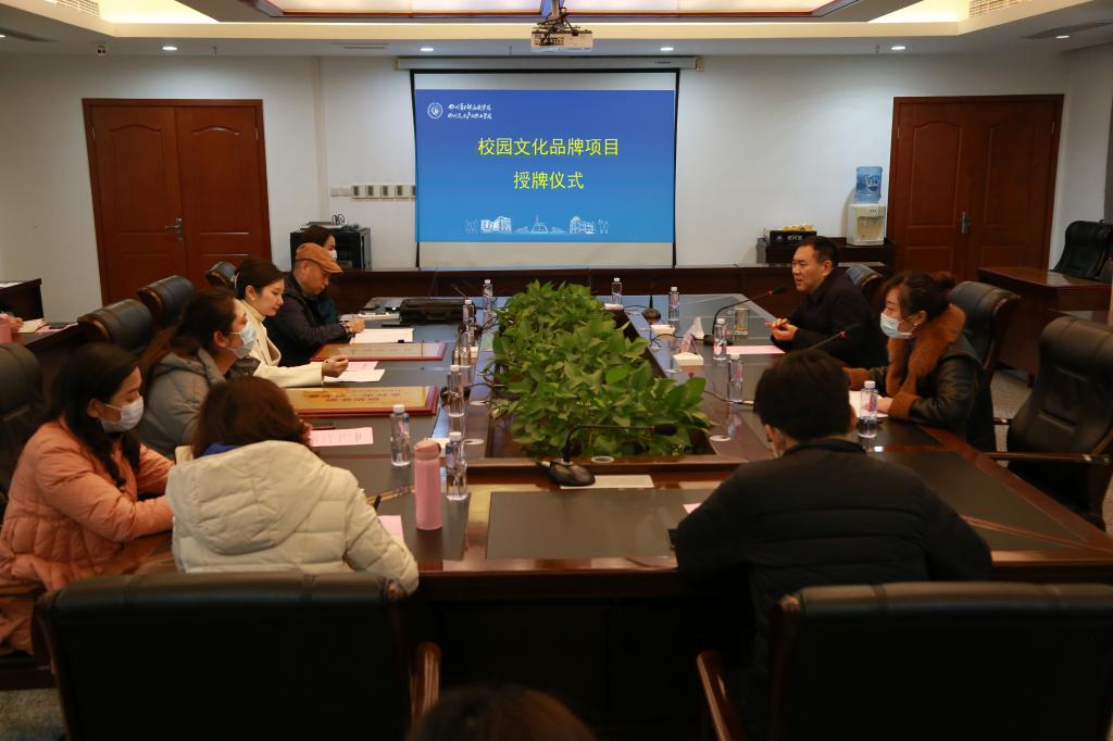 为深入贯彻习近平新时代中国特色社会主义思想和党的十九大精神,全面落实《关于加强和改进新形势下高校思想政治工作的意见》文件精神和全国教育大会各项工作部署,12月9日上午,我校在明慧楼217会议室举行校园文化品牌项目授牌仪式。校党委副书记王泗德出席并讲话。宣传统战部副部长刘莹主持会议,相关部门负责人参加会议。