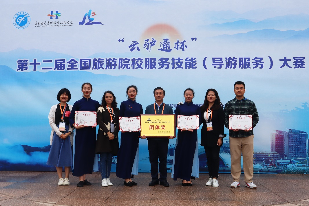 5月13日——16日,由中国旅游协会主办的“云驴通杯”第十二届全国旅游院校服务技能(导游服务)大赛在青岛举行。我校文化旅游学院旅游管理专业学生达鑫月、李岚曦获得英语组一等奖;代露雨获得中文组一等奖,殷文欣获得中文组二等奖,并以总分第4的成绩获得“团体奖”。