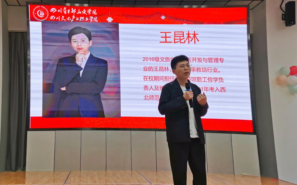活动在《光阴的故事》吉他弹唱的歌声中拉开序幕。随后2004级原广电校校友谢甜甜、2017级融媒学院袁莹、2017级大数据与互联网学院周应星以及2017级王昆林四位优秀校友代表分别从自身经历从发,用一个个小故事分享了自己成长路上的体会和感悟,勉励学弟学妹们珍惜时光,砥砺奋进,在书海中汲取智慧,用努力创造美好明天。最后师生和校友们共唱校园歌曲,用歌声追忆青春,表达情谊,活动在《歌唱祖国》大合唱的歌声中圆满结束。