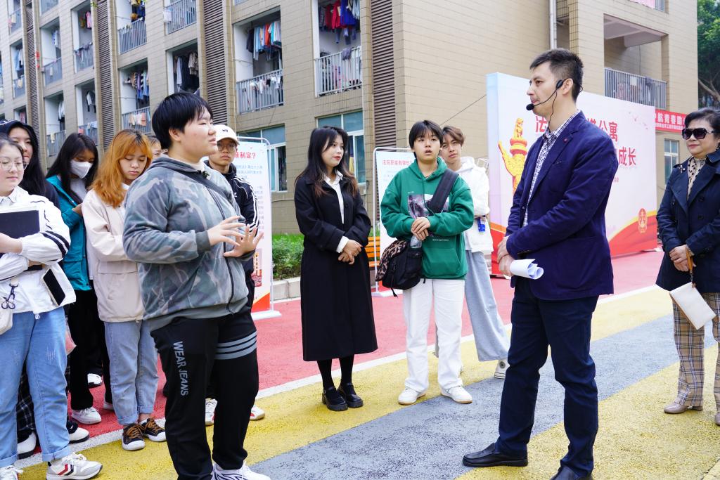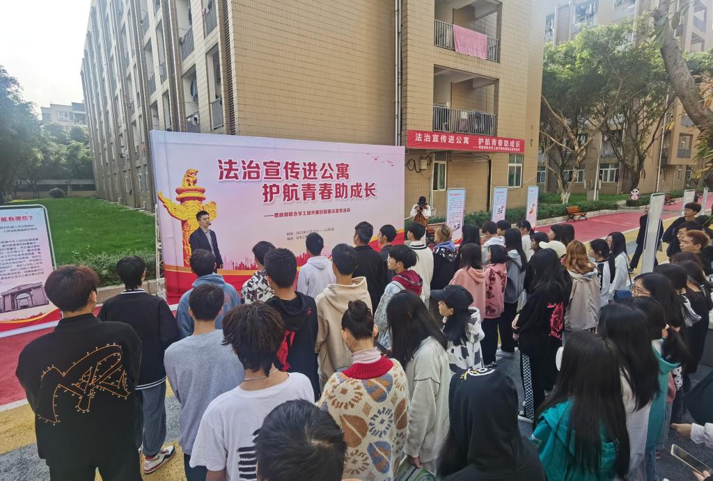 为贯彻落实第九次全国法治教育宣传工作会议精神,深入学习习近平法治思想,扎实有效开展新时代法治宣传教育,增强大学生法治观念,提高大学生法律意识,10月29日上午,思政部将《思想道德与法治》课堂搬进公寓,在女生公寓开展了法治宣传活动。校党委委员、副院长党华、思政部教师代表、20级、21级学生代表参加了本次活动。