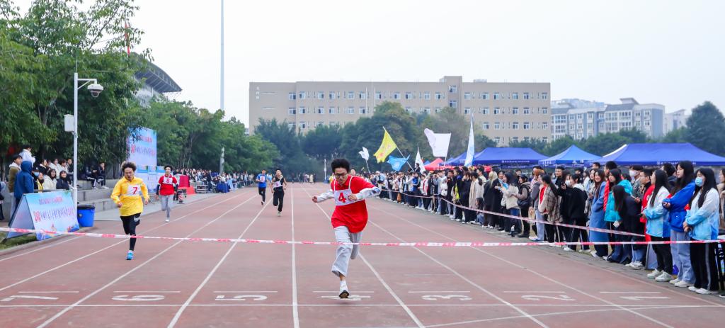比赛过程中,有的同学用全程陪跑,传递了手足情谊;有的同学跌倒了,迅速爬起再继续,展现了拼搏精神;有的同学在冲刺完毕后手持院旗绕场,彰显了集体合力。