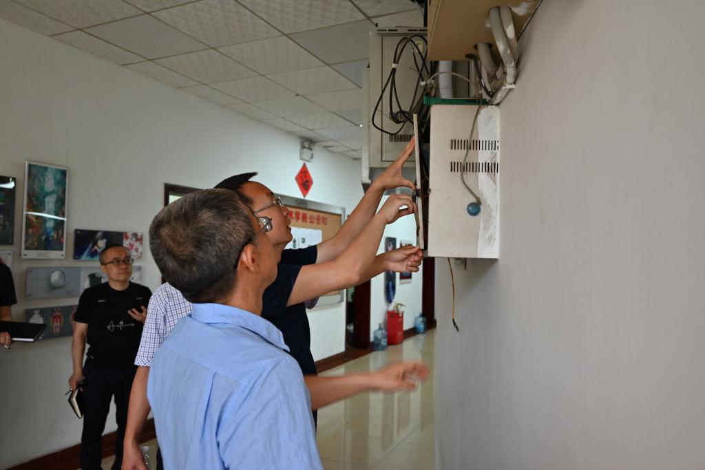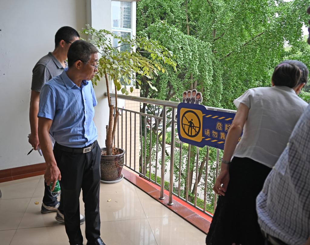 陈敬贵一行在校园明慧楼、医务室和川品广告印务中心所在斑马楼、温故楼、3号楼临时隔离点、校直属企业员工宿舍、学生食堂、学生宿舍园区、教职工宿舍等场所,对校园道路沟渠、线路管网、建筑外墙及附属设施、用电用气设备等涉及的消防、防汛、用电、用气安全,以及校园环境卫生、绿化美化、办公环境等涉及的环境秩序卫生安全进行全面隐患排查。