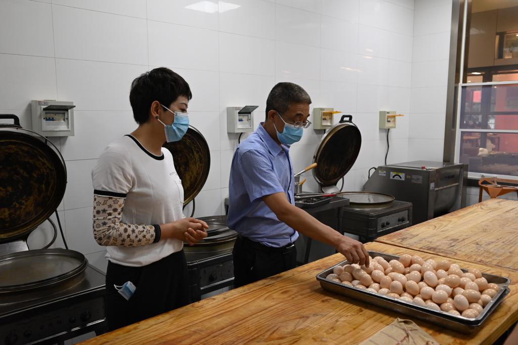 检查组还深入学校食堂后厨、校园超市、校园商铺奶茶店、水果店、学生创新创业中心等场所,围绕食品原料追溯、库房管理、烹饪加工现场管理、留样管理等重点环节,对校园餐饮食品合法合规经营、“互联网+明厨亮灶”智慧监管平台建设以及常态化疫情防控措施落实情况进行检查。对存在问题提出整改意见,并责令限时整改到位。