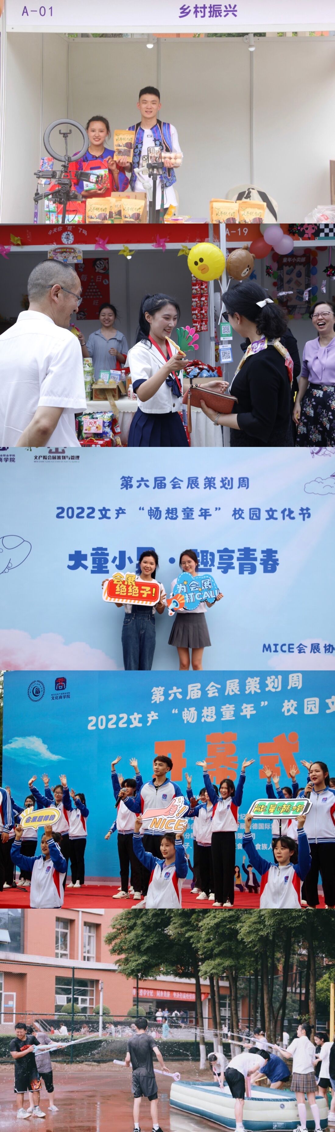 2022年5月31日上午10时,四川文化产业职业学院第六届会展策划周——2022文产“畅想童年”文化节在学校逸飞广场成功举行。校党委委员、副院长李太斌,校党委委员、副院长黄萍,四川国际会议有限公司副总经理陈宁,四川国际会展有限公司会展事业部部长胡适知,成都世纪城会展集团展览经营管理总公司副总经理杨会兰等企业嘉宾莅临开幕式。党政办、宣传统战部、学生工作部、安全保卫处(武装部)、校团委、发展规划处、教务处、对外交流合作处、招生就业处等职能部门领导及文化商学院教师代表出席了活动。