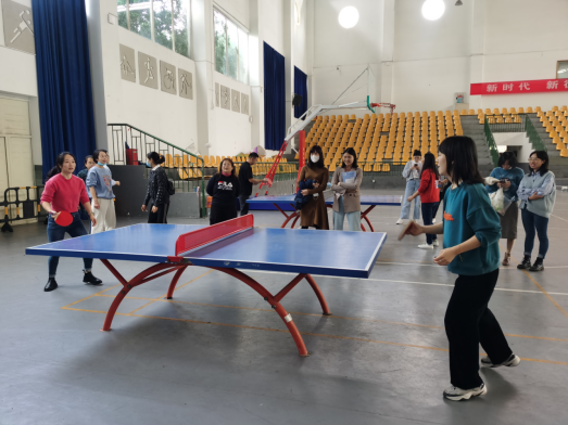 赛场上,气氛紧张热烈,选手们步伐矫健、英姿勃发、进退有度,将横拍、直拍、扣球、旋球、弧线球等娴熟的球技展现得淋漓尽致,每一次精彩的扣杀和巧妙的接球都吸引着大家的视线,引发了围观老师们的阵阵喝彩。