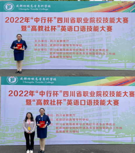 11月10日至11日,由四川省教育厅主办的2022年四川省高职院校学生“高教社杯”英语口语技能大赛在成都纺织高等专科学校举行,来自全省53所高职院校的53名学生参加了比赛。我校20级社区管理与服务专业学生曾丽桦以总分第一名的成绩斩获“非英语专业组”一等奖,获得代表四川省参加全国职业院校英语口语技能大赛的资格,彭晓雪获评“优秀指导教师”。