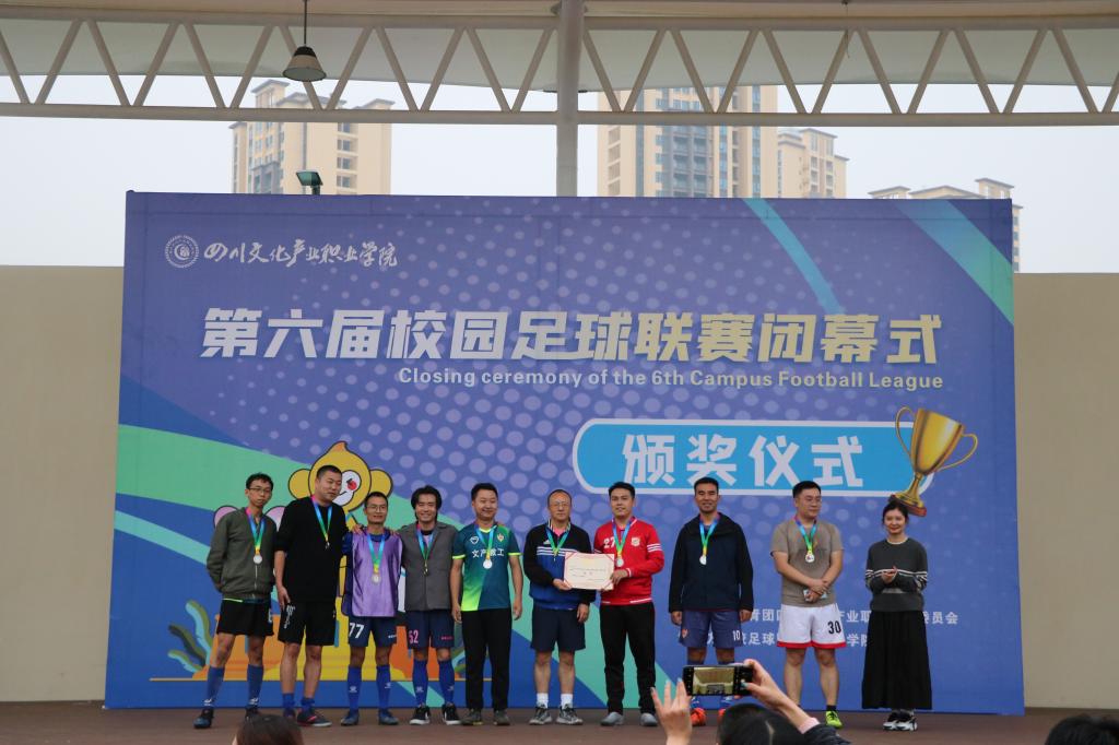 11月8日下午,我校第六届CIFL校园足球联赛闭幕式暨颁奖仪式在文星湾足球场举行。学校党委委员、副院长肖必恒,校团委全体老师、各二级学院党总支副书记、分团委书记出席活动。各代表队队员、教练员、拉拉队以及全体裁判员参加了活动。