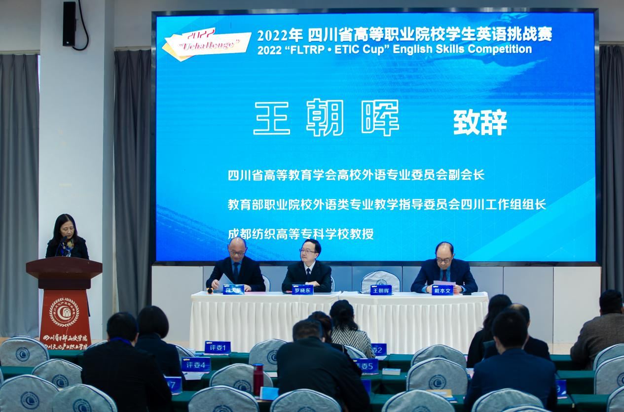 校党委副书记、院长罗晓东,四川省高等教育学会高校外语专业委员会副会长、教育部职业院校外语类专业教学指导委员会四川工作组组长、成都纺织高等专科学校王朝晖教授,外语教学与研究出版社西南信息中心主任戴本文出席了大赛开幕式,开幕式由我校教务处处长向天华主持。