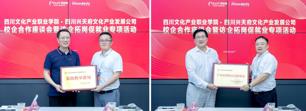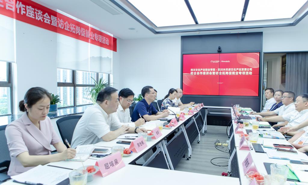 为深入贯彻落实党中央、国务院“稳就业”“保就业”决策部署,进一步深化校企合作,推深做实教育部“书记校长访企拓岗促就业”专项行动,有效拓展毕业生就业渠道和就业岗位,全力促进学校2022届毕业生更加充分更高质量就业。6月22日下午,四川省干部函授学院、四川文化产业职业学院党委书记代光举率队到四川兴天府文化产业发展有限公司走访调研并开展校企合作座谈会暨访企拓岗促就业专项会议。校党委委员、副院长朱霖陪同。