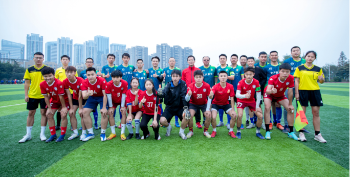 足球场上,一场师生之间的表演赛在崭新的绿茵场拉开序幕,学生足球队运动员的头颅和胸膛化作盾牌、游刃有余,教师足球队守门员鱼跃扑球、化险为夷,双方队员你追我赶、足下生风,进攻和防守都展现的淋漓尽致;运动中,老师们挥洒青春、展示活力,发光发亮、别样风采。