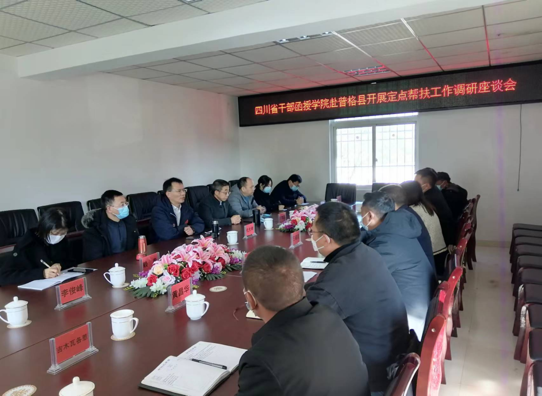 在螺髻山镇政府,代光举一行同县、乡、村有关负责同志举行座谈会。双方就激发群众内生动力、扶优做强村级产业、建强基层党组织等话题进行了深入的交流。代光举代表学校党委对普格县对学校各项工作的支持、对驻村干部的关心表示感谢,代光举强调,巩固拓展脱贫攻坚成果同乡村振兴有效衔接是一项重大政治任务,一是学校党委、各级党组织和党员干部要进一步提高政治站位,切实增强责任感和紧迫感,统筹推动乡村产业、人才、文化、生态、组织“五大振兴”。二是坚持扶志与扶智相结合,充分发挥学校的比较优势,以螺髻山镇为重点,逐步辐射全县,有计划、分批次对致富带头人、村干部等开展培训,推动能力素质全面提升。三是坚持软环境硬设施齐推进,在不断改进基础设施的同时,更要注重整体氛围的营造,整合文旅资源,强化对外宣传,提振名声名气,打造安全、和谐、温暖的旅游环境。四是坚持物质脱贫与精神脱贫一起抓,教育引导群众主动移风易俗,摒弃陈规陋习,培育新风正气,激发自力更生、勤劳致富、脱贫奔康的内生动力。五是坚持立足当前与着眼长远相结合,充分调动学校的力量,加大脱贫攻坚产品以购代捐力度。同时,系统谋划文化创意产业发展思路,加大创新产品开发力度,利用电商、学校超市等销售平台助销农特产品。