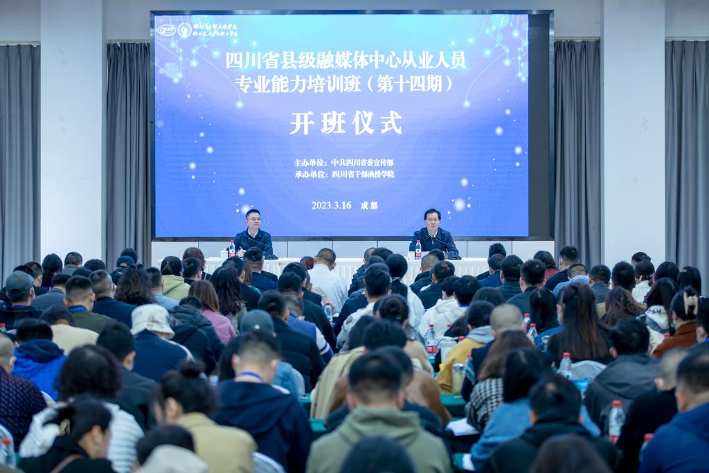 3月16日上午,由中共四川省委宣传部主办,我校承办的第十四期全省县级融媒体中心从业人员专业能力培训班(管理运营类、内容生产类)在校图书馆四楼正式开班,校党委书记代光举出席致辞并作动员讲话,省委宣传部干部处副处长、三级调研员张陈帅主持。